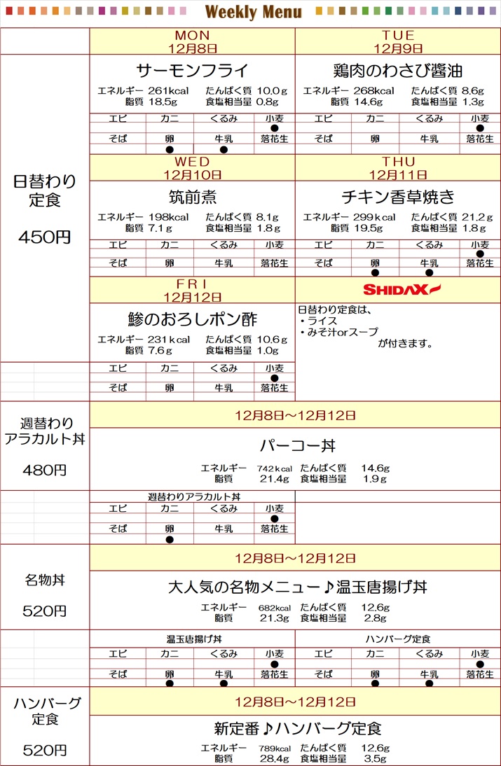 週替わりメニュー