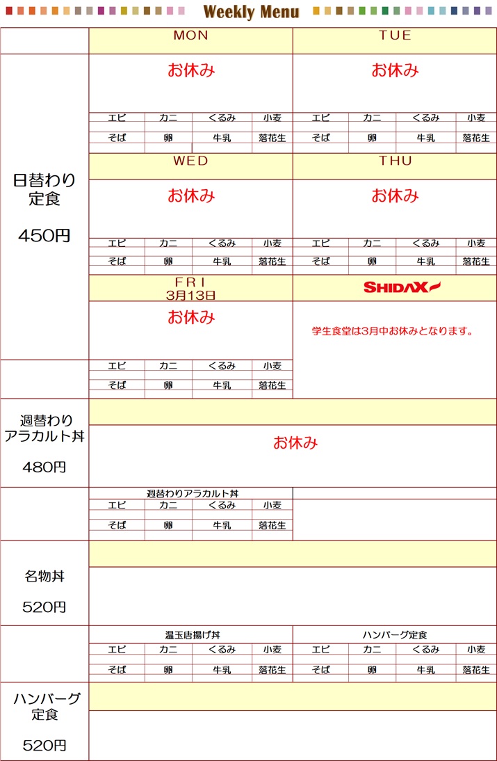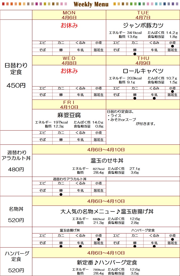 週替わりメニュー