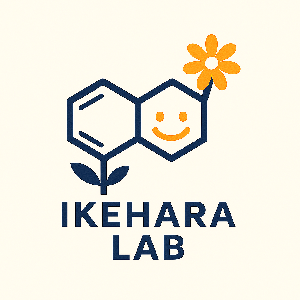IKEHARA LABのロゴは、「幸せホルモン」と呼ばれるセロトニンの分子をもとにデザインされています。科学と人とのつながりを大切にしながら、研究を通して社会に笑顔や安心を届けたいという思いが込められています。IKEHARA LABは、テクノロジーの力で人々の暮らしをより豊かで幸せなものにすることを目指しています。