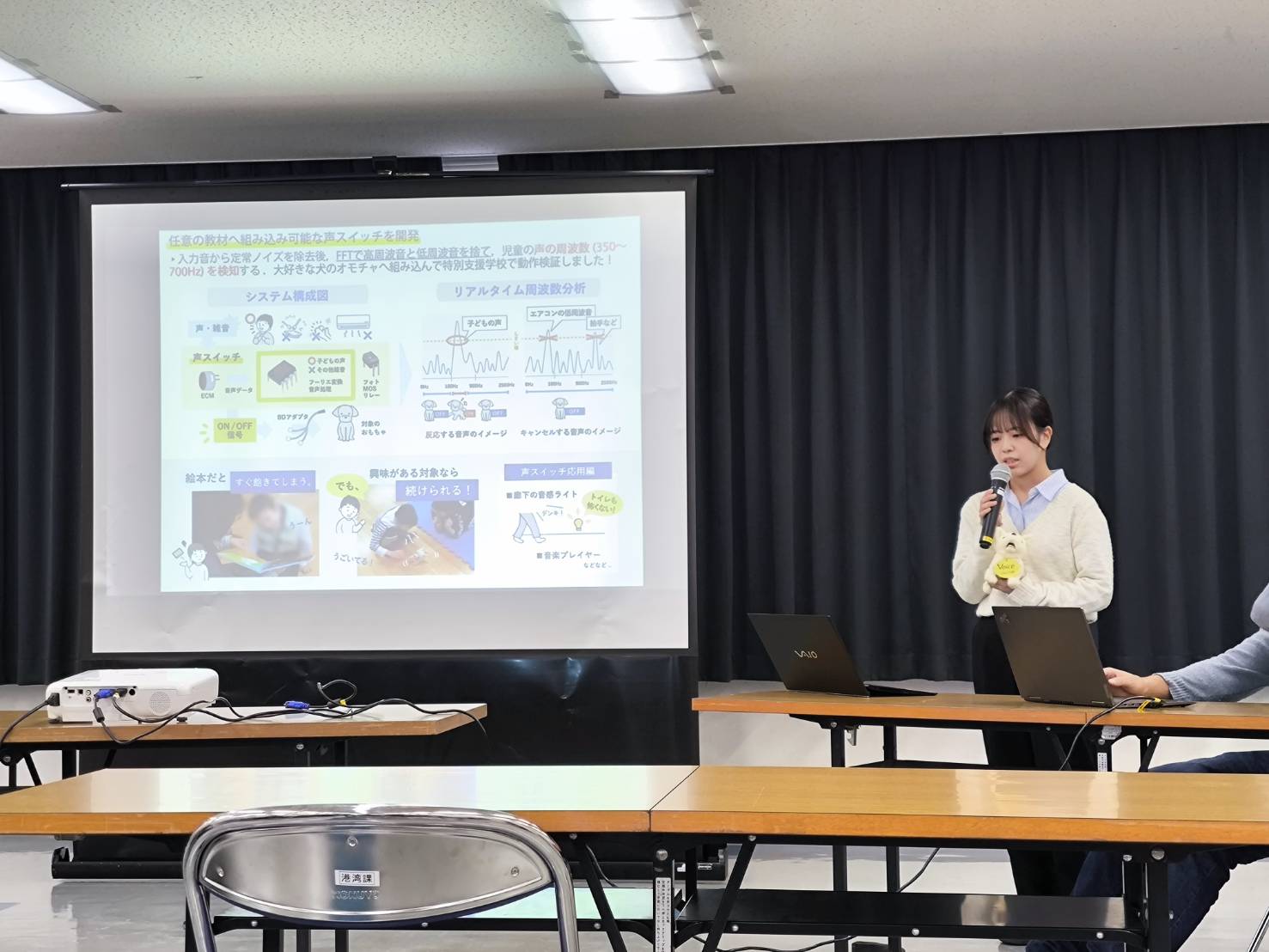 札幌市立大学で開催された第27回日本バーチャルリアリティ学会の大会で学部2年の伊藤 楓人さんが「特別支援教育におけるロボット掃除機の自主的操作による協調活動参画の検討」のタイトルで口頭発表しました。