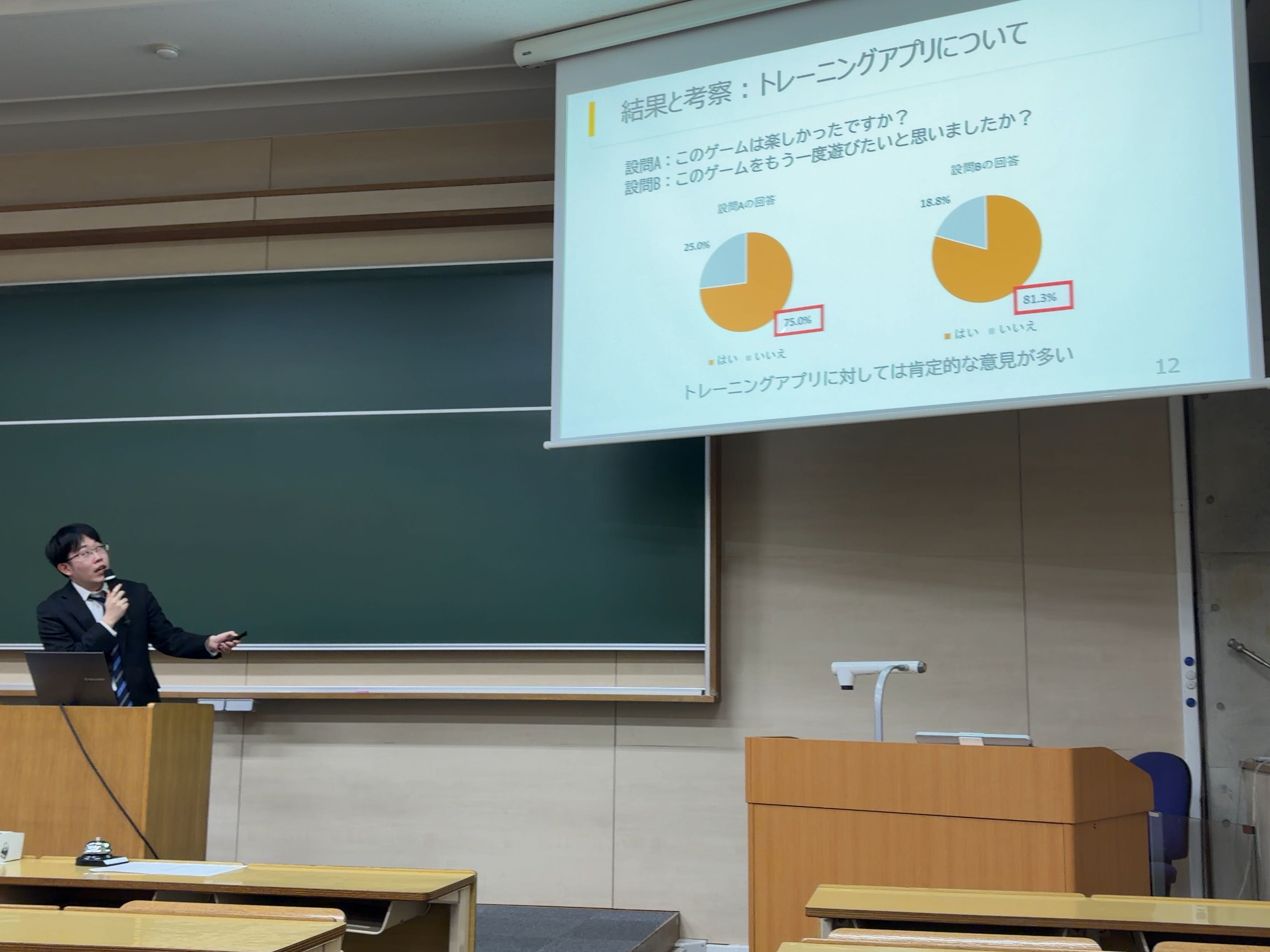 コンピュータ応用学科では、この時期に通年で取り組んだ各研究テーマの取り組みを卒業論文にまとめて提出し、学科全体で発表会をおこないます。中茂研究室からは4年生7名が発表しました。質疑応答にもしっかり対応できていましたし、他の研究室の発表に対しても積極的に質問できていました。
