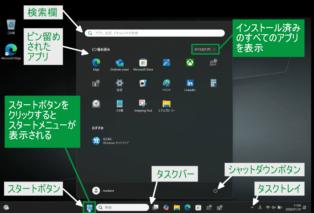 4.Windows11スタートメニュー画面について