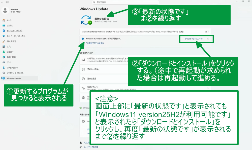 「Windows11 version25H2が利用可能です」と表示されていたら
