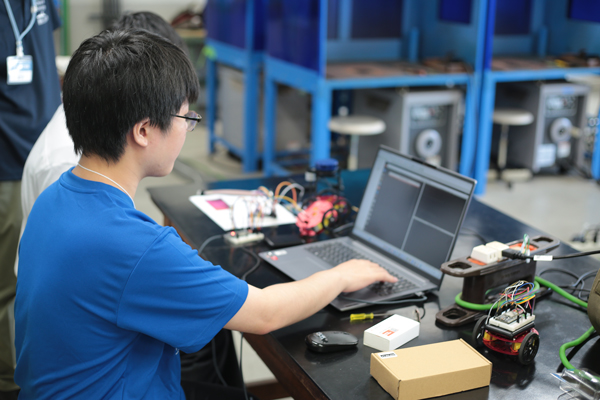 - 最初は3時間も…と思っていましたが、実際に体験してみると回路に配線するのが⾯⽩かったです。