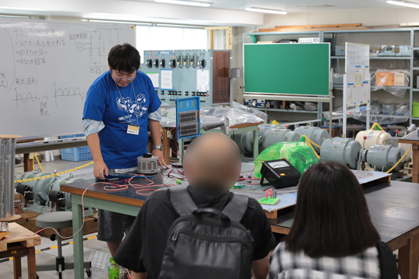 • 電気電子工学科では、専⾨知識のある学⽣の⽅が⼿厚くサポートしてくれる中での体験だったので器具の扱い⽅が分からなくても安⼼して体験することができました。