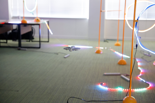 人の動きに連動して動くロボットで、簡単なプログラミング体験ができます。