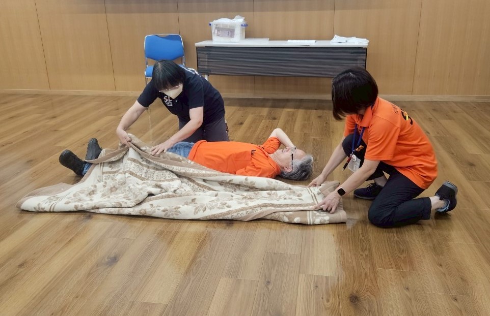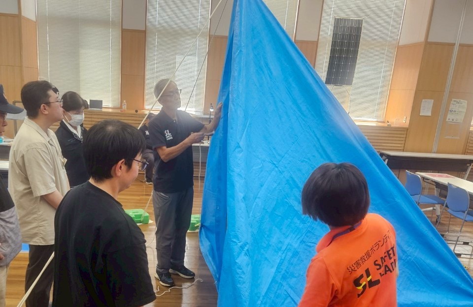 講座では、災害発生直後に自分や家族、周囲の人々を守るための知識と技術を学ぶことができました。応急手当やテント設営、初期消火などの実技訓練が含まれ、実践的な内容が充実しており、参加した学生からは「火災対応の実技が特に興味深く勉強になった」「ブルーシートでのテント張りなど、将来きっと役立つ内容ばかりだった」との感想が寄せられました。女性の参加者も多く、安心して取り組める環境だったとのことです。