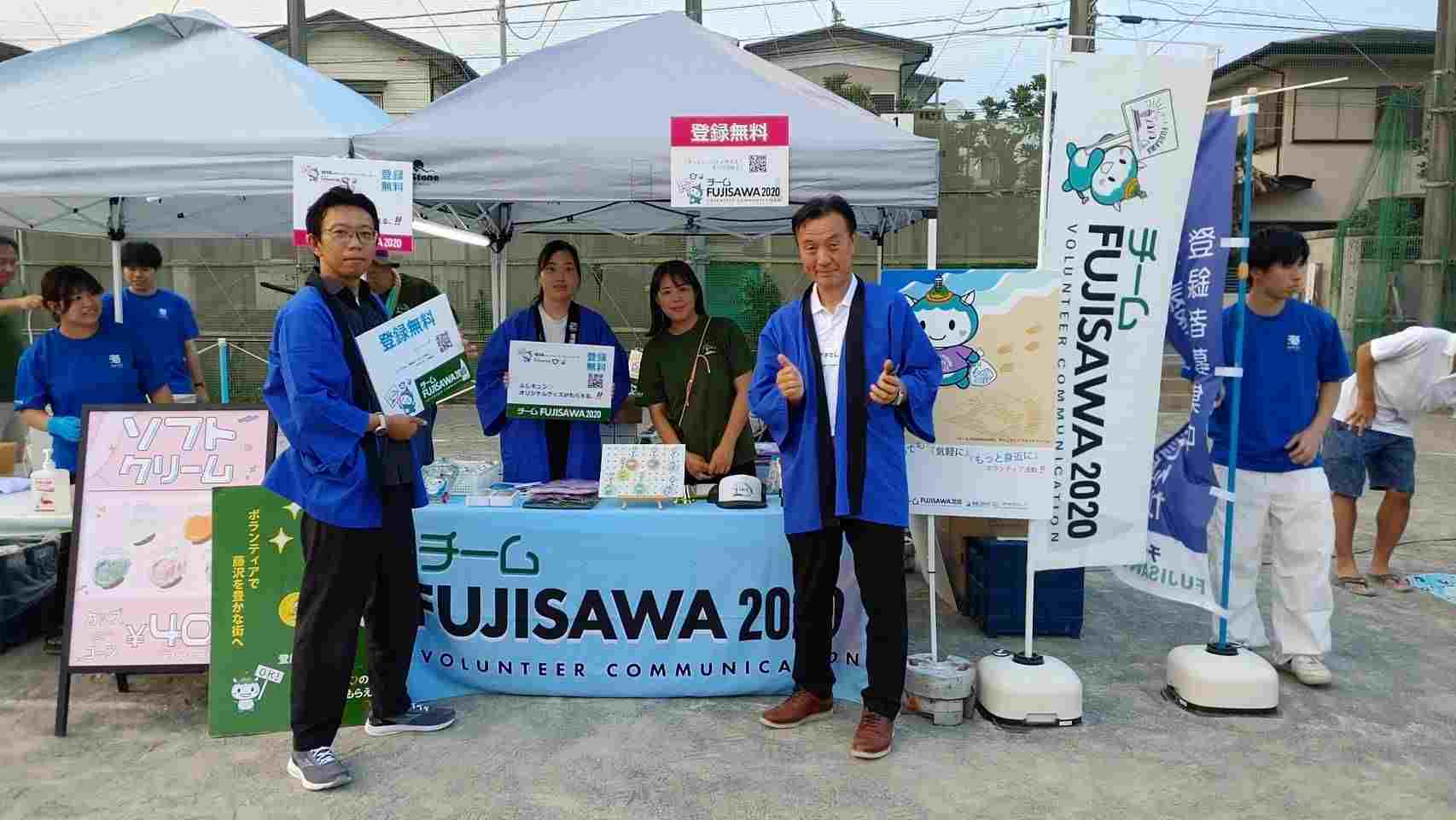 今回の夏まつりでは、地域とのつながりを深め、活動を広く知っていただくため、チームFUJISAWA2020の活動内容を紹介するパネル展示やチラシの配布を行い、今後のイベント参加やボランティア活動への協力を呼びかけました。来場者の方々からは「応援しています」「何かできることがあれば参加したい」など、温かい声を多数いただき、地域との連携強化に手応えを感じる一日となりました。