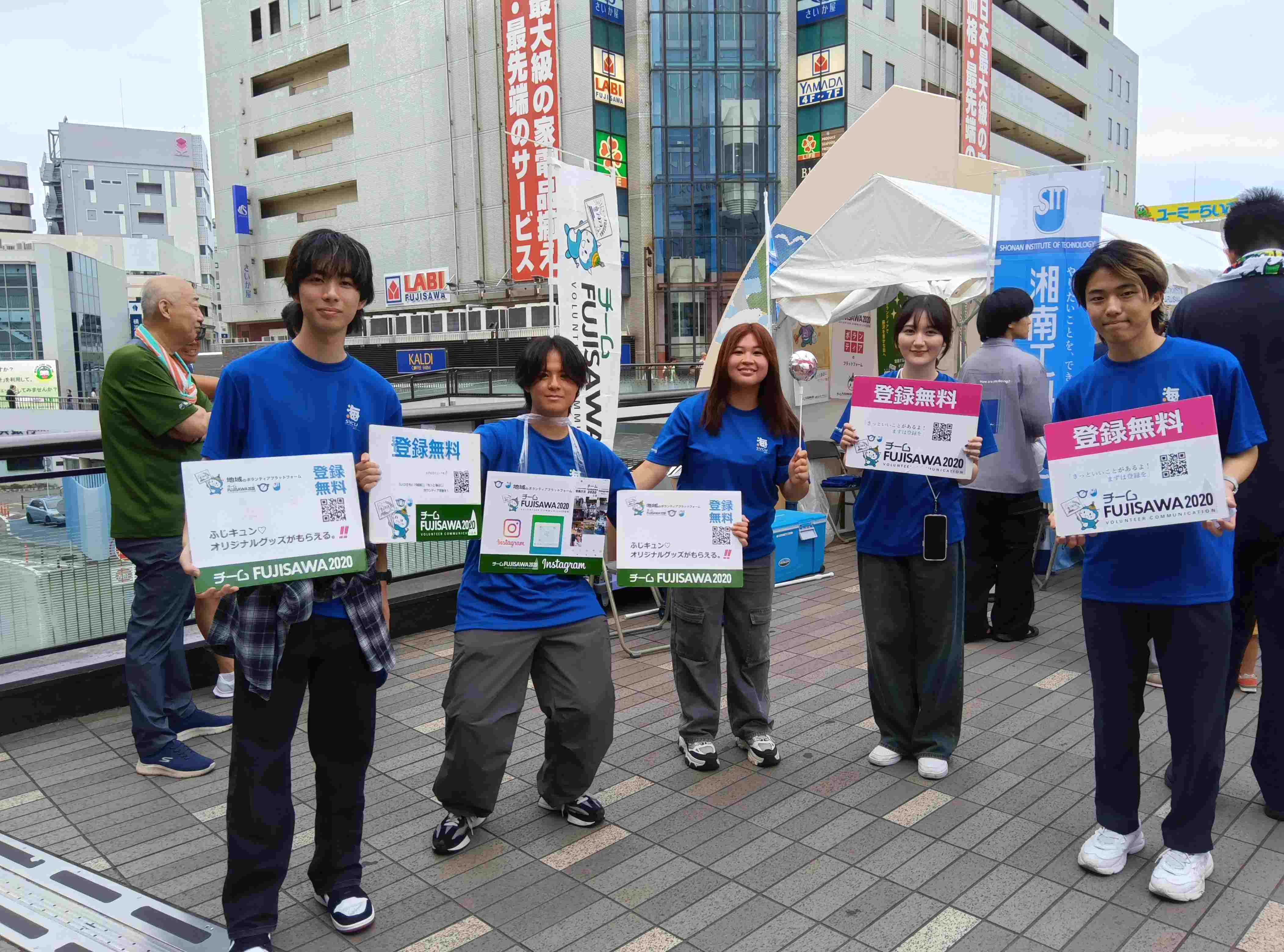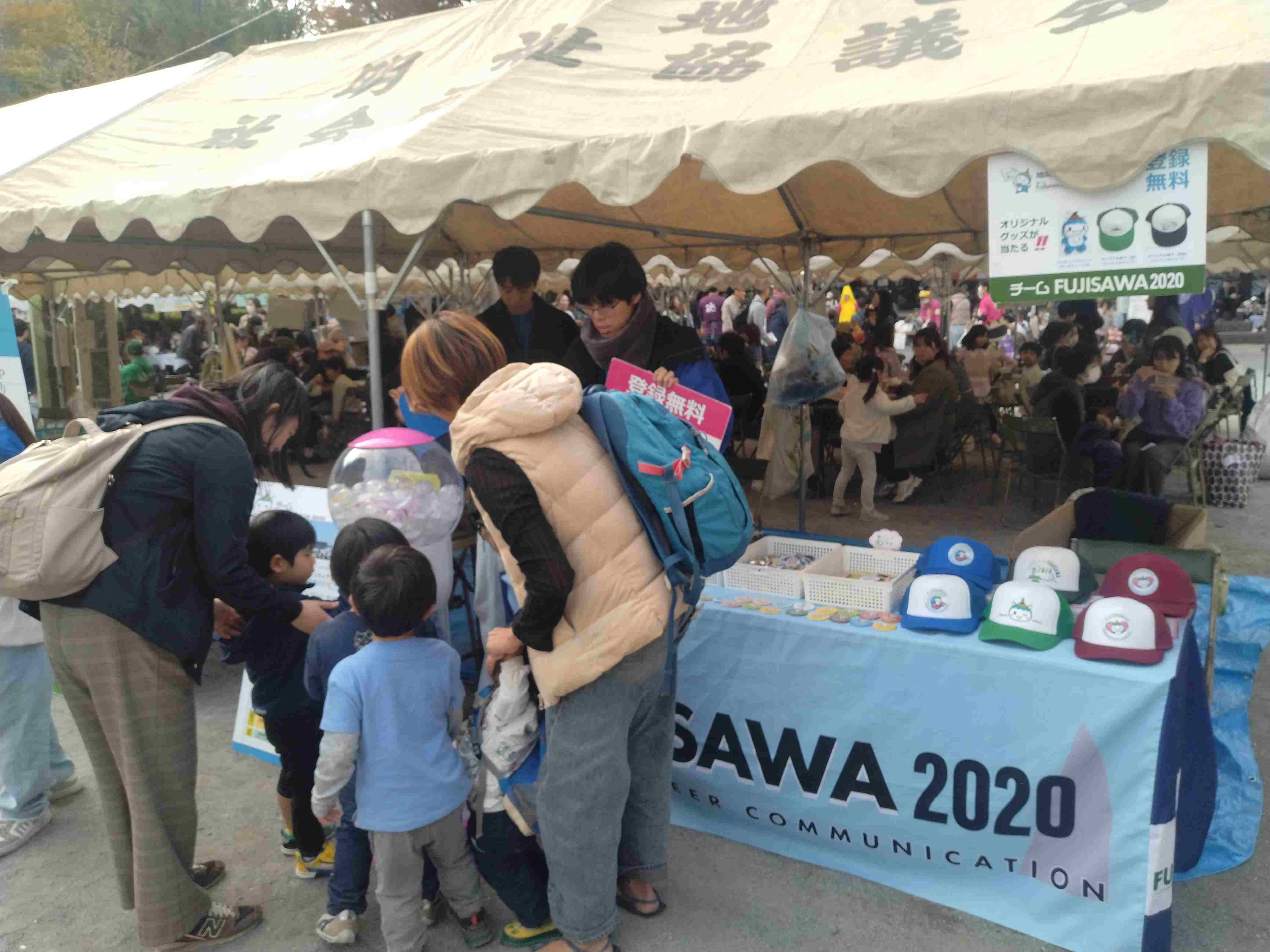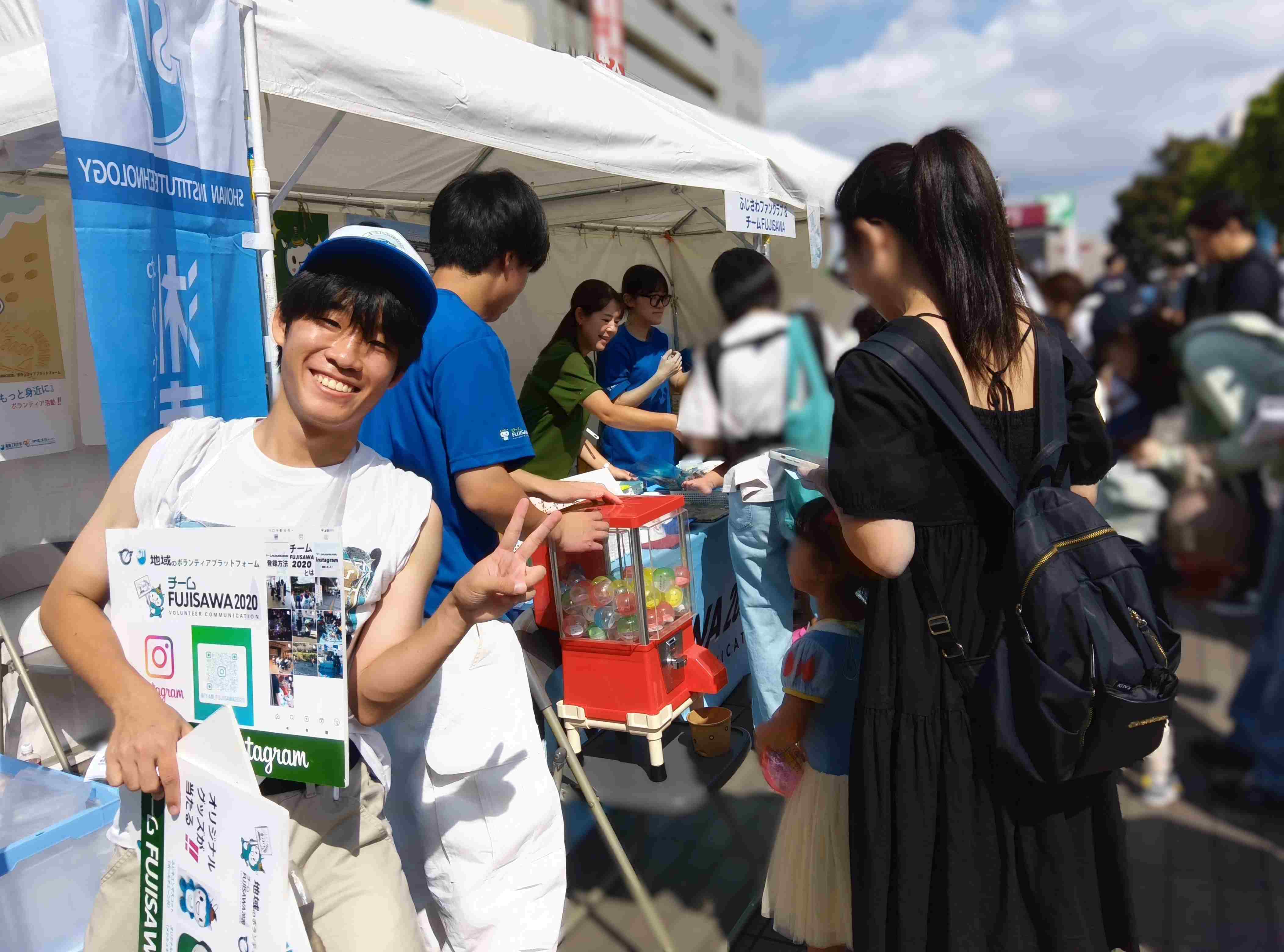 初日27日には、藤沢駅周辺の藤沢エリアに各種ブースやステージ、飲食コーナーが並び、活気あふれる雰囲気に。チームFUJISAWA2020は藤沢駅前に広報ブースを出展し、新規登録者の勧誘や活動紹介を行いました。ブースには多くの方が立ち寄り、ボランティア活動や地域貢献に関心を寄せていただく良い機会となりました。活動を広く知ってもらえる場となり、大変充実した一日となりました。
