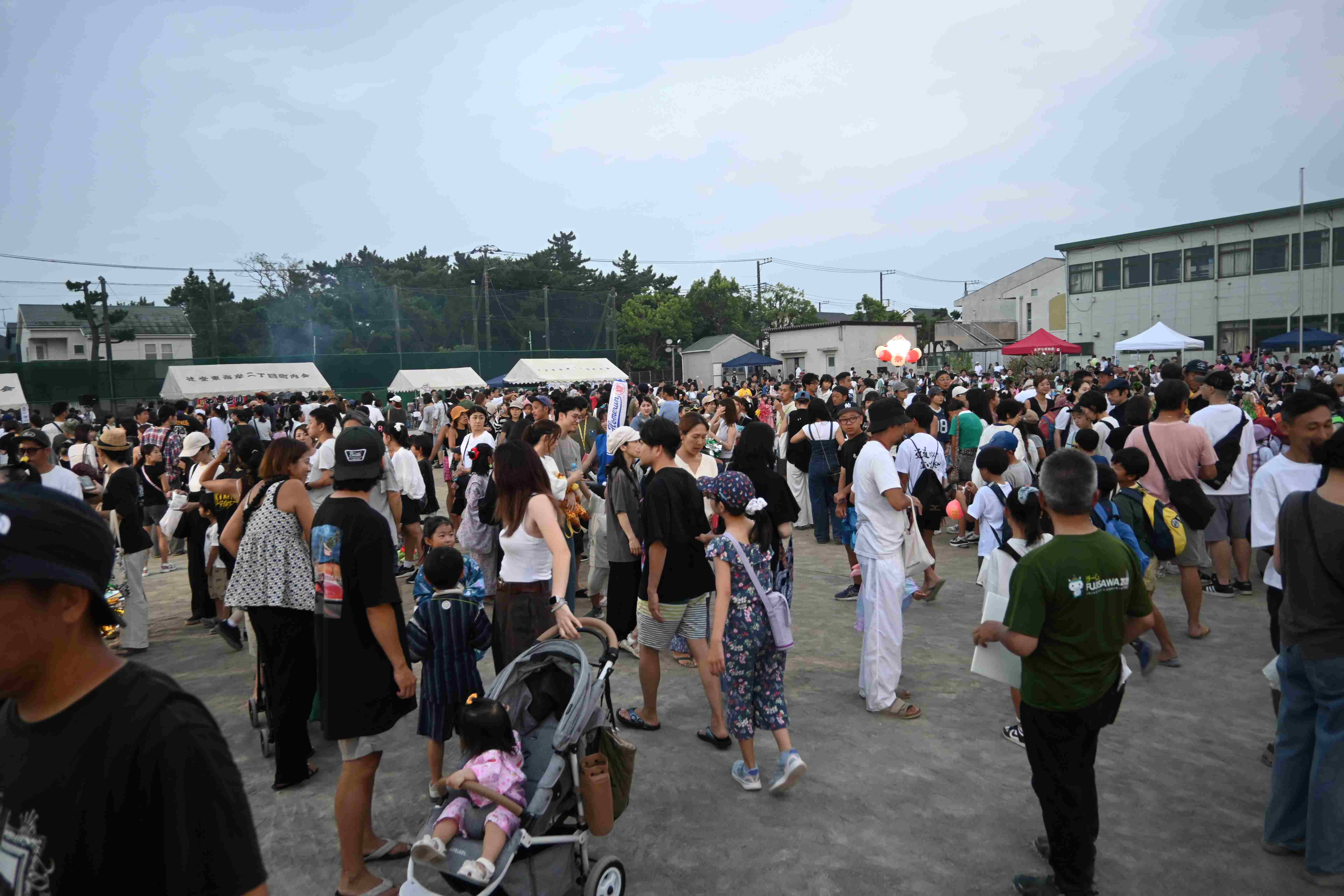 学生や生徒はお神輿の担ぎ手や縁日の金魚すくい、輪投げ、エアトランポリンを手伝いました。 また、「チームFUJISAWA2020」の募集活動を行うことで認知を広め、地域との連携を強化することも貢献しました。
