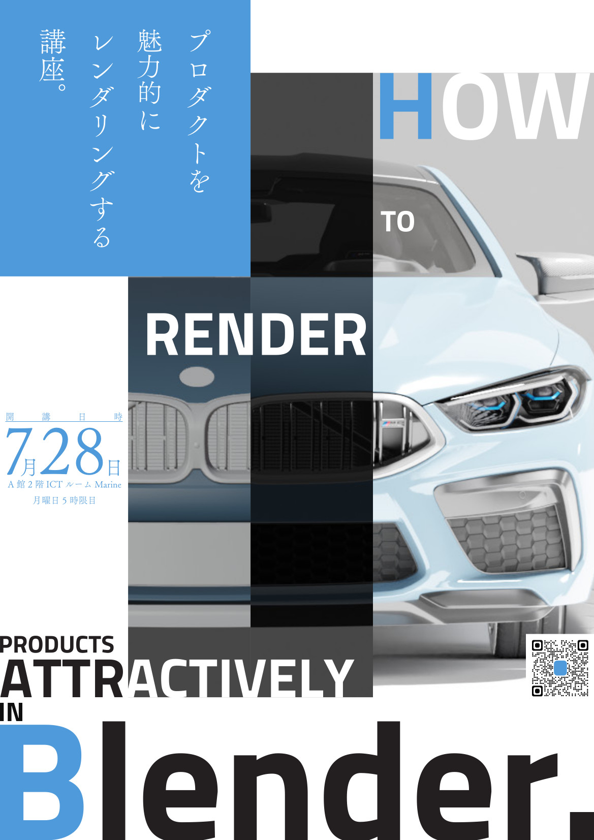 メディア情報センター学生スタッフによる、学生のための、Blenderでプロダクトを魅力的にレンダリングする講座を開催します。