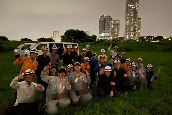 2025年7月12日・13日、多摩川河川敷の夏の風物詩「点火祭」に花火研究部が打ち揚げで参加し、夜空を花火で彩りました。