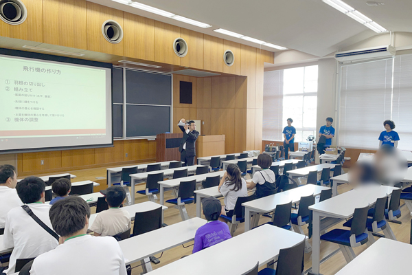 2025年7月12日、工学部 機械工学科 池田裕一准教授と稲毛達朗准教授の研究室が、独立行政法人 国立青少年教育振興機構の令和7年度 子どもゆめ基金助成活動として『ものづくり体験イベント/「光るオルゴールごま」と「トンダ―君」(模型飛行機)を作ろう』を湘南工科大学で開催しました。