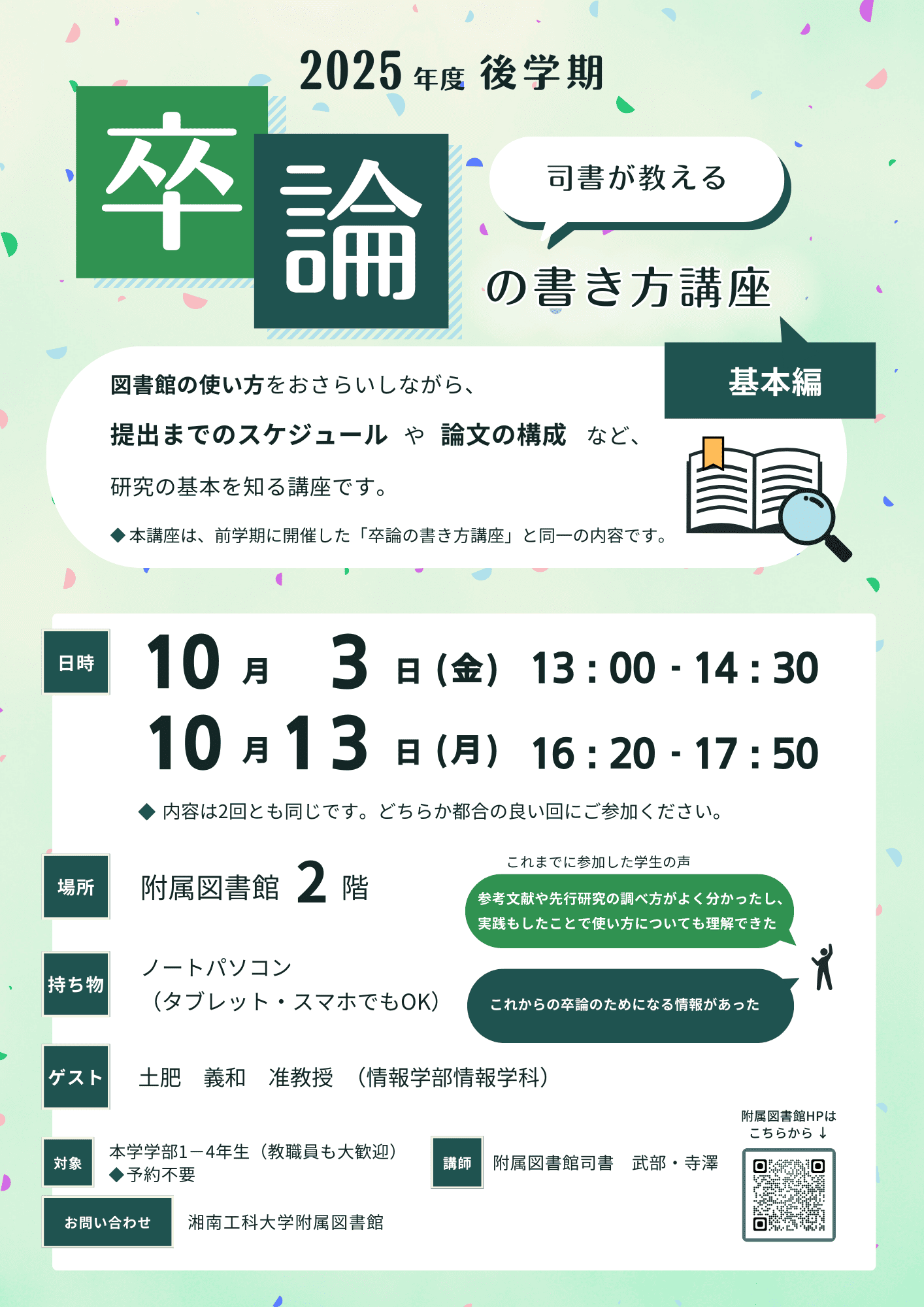 ※本講座は、これまでに開催した「卒論の書き方講座・基本編」と同一の内容です。