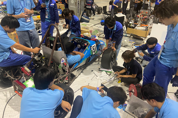 同大会は、学生自らが小型フォーミュラスタイルの車両を使ったビジネスを構想し、実際に車両を設計、製作してコース上で車両走行性能を実証する工学的技術の教育競技会です。ICV(ガソリン自動車)とEV (電気自動車)のクラス別に、設計やデザイン、コストや走行性能など、開発に関わるすべての項目が審査の対象となります。今年は、全国および海外チームを含め、ICV classに58チーム、EV classに25チームが参戦しました。