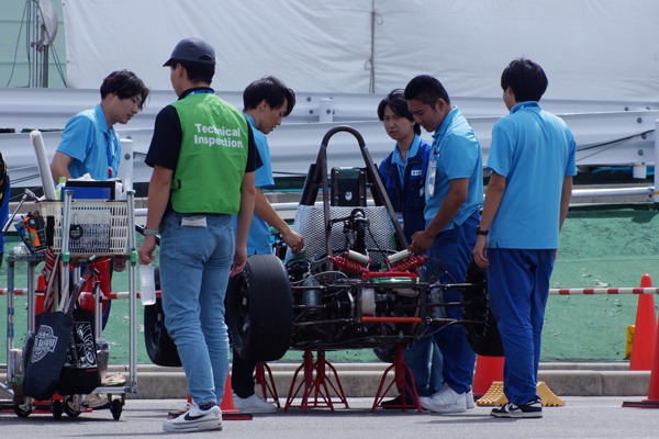 大会中は、技術車検を2つはクリアしたものの、後2つのハードルを越えることができず、動的審査に進むことはできませんでしたが、最後まで諦めずに車検に臨む学生の姿は、多くの来場者に伝わり、声援をいただいたり、助言をいただいたりと来年に向けてたくさんの収穫を得ることができました。また、他大学や海外から参戦した大学とも交流を持つことができ、普段は経験できないような機会にも恵まれました。