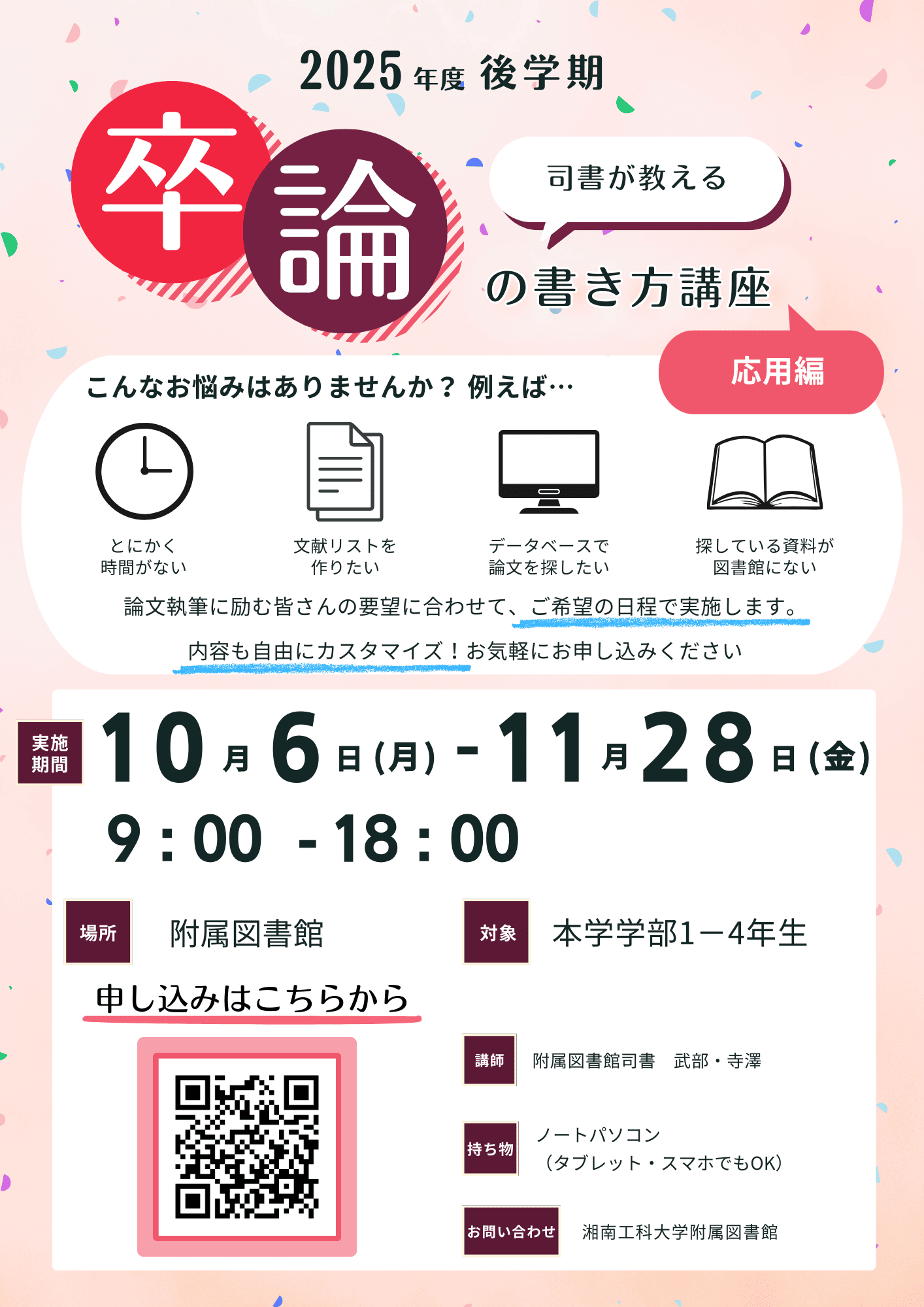 附属図書館では、「卒論の書き方講座・基本編」に続き、