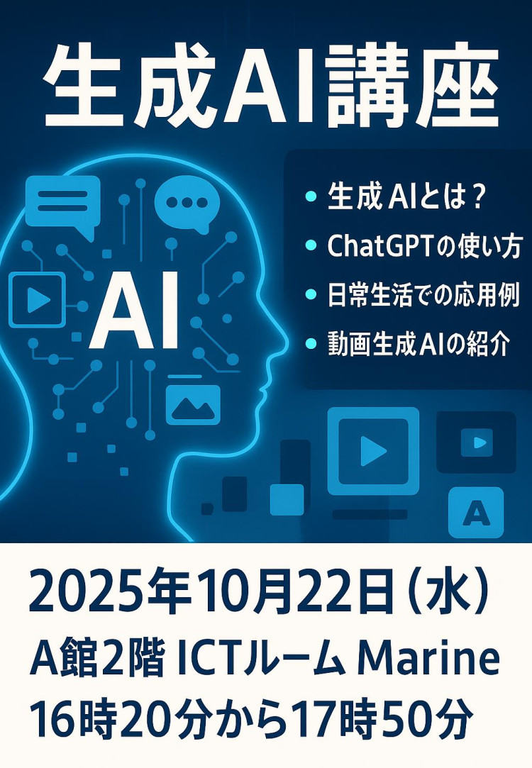 ChatGPTなどの話題の「生成AI」について、使ってみながら学ぶ講座です。
