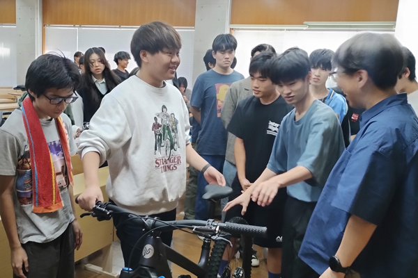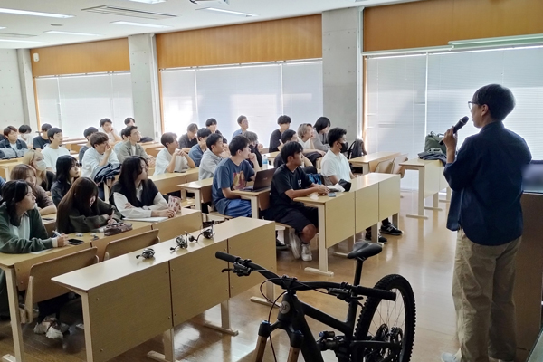 2025年10月10日、株式会社シマノより講師を招いた特別講義が開催され、工学部 総合デザイン学科の学生約60人が参加しました。同学科 鈴木浩教授が担当する本講義は、株式会社シマノより、デザイン室 大瀬戸葉子部長および本学総合デザイン学科卒業生で同社デザイナーの塩崎耕大氏を迎えて実施されました。