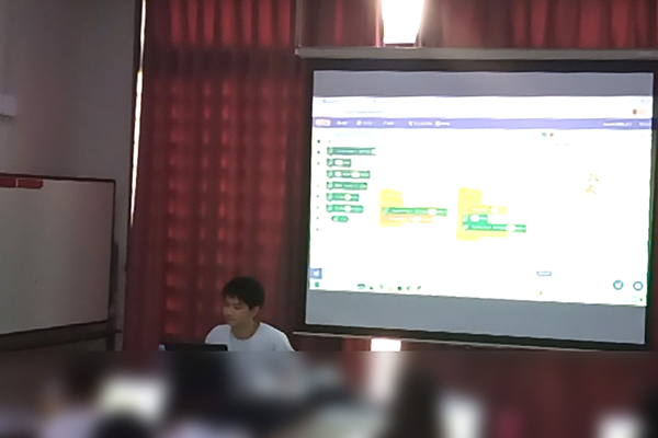 本イベントは、片瀬市民センター主催の子ども向け事業「Let's Try Katase kids」の一環として行われたもので、湯浅研究室では2022年から毎年、体験教室の講師として参加しています。今年は、ビジュアルプログラミング言語のScratch(スクラッチ)を使って、プログラミングでリズムを作ってみることに取り組みました。リズムの回数やテンポの変え方などを学生が説明し、子どもたちは、オリジナルのリズムを作ることにもチャレンジしました。