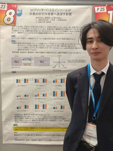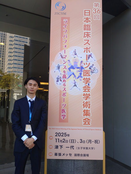 2025年11月2日・3日、幕張メッセ 国際会議場で開催された「第36回日本臨床スポーツ医学会学術集会」において、工学部 人間環境学科4年の鈴木来望さんが研究成果を発表しました。
