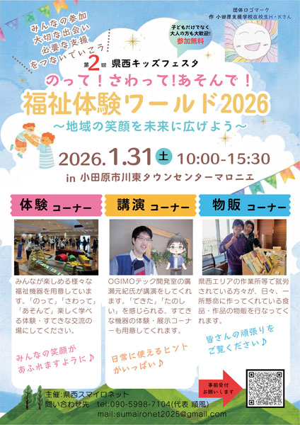 2026年1月31日(土曜日)、小田原市川東タウンセンターマロニエで開催される「第2回県西キッズフェスタのって!さわって!あそんで!福祉体験ワールド2026」に情報学部 情報学科 中茂研究室の学生が今年も出展します。
