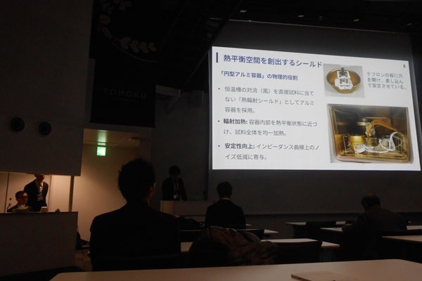 【発表題目】大型棒状高Qm PZTセラミックスを用いたインピーダンス温度特性測定用 新規治具の開発と評価