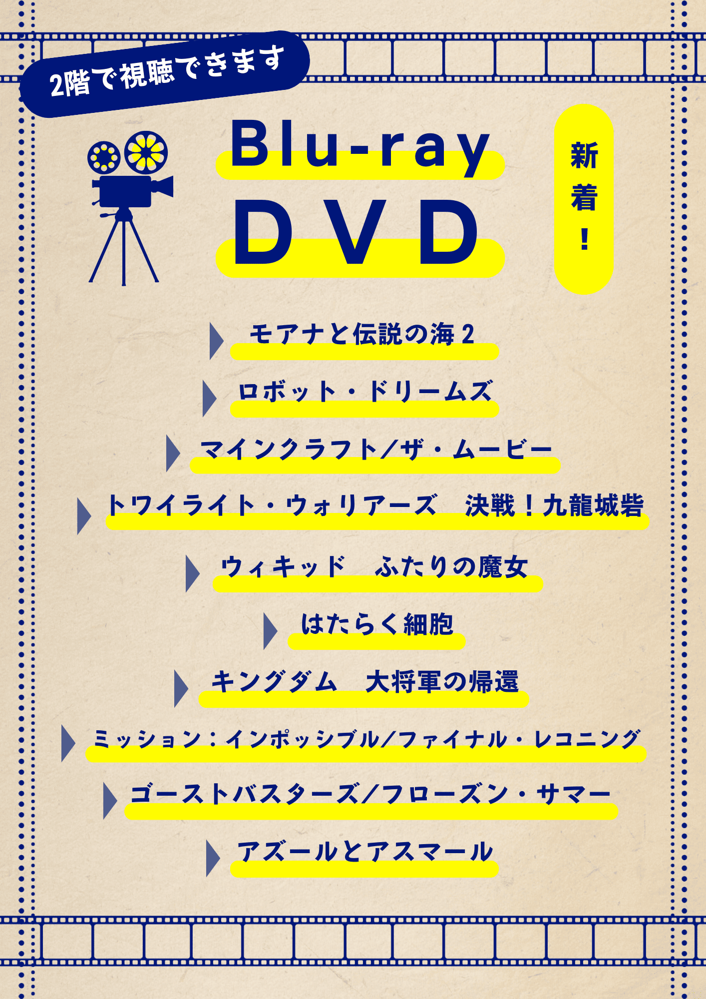 新着DVD・Blu-rayは、図書館2階の視聴覚コーナーでご覧いただけます。(館外貸出不可)