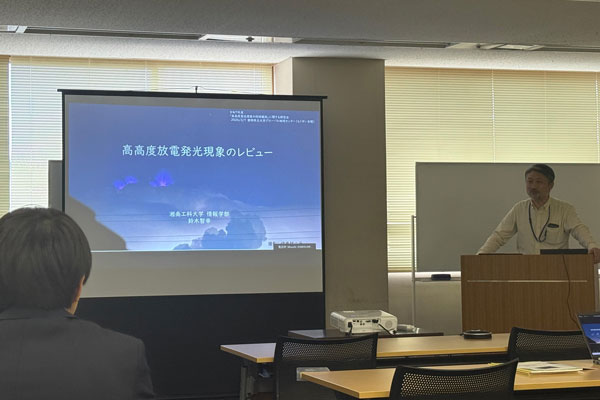 2026年3月7日~8日、工学部 電気電子工学科 成田知巳教授および情報学部 情報学科 鈴木智幸教授が、静岡県総合研修所もくせい会館(静岡県静岡市)で開催された「令和7年度『高高度発光現象の同時観測』に関する研究会」(主催:静岡県立大グローバル地域センター)に登壇しました。