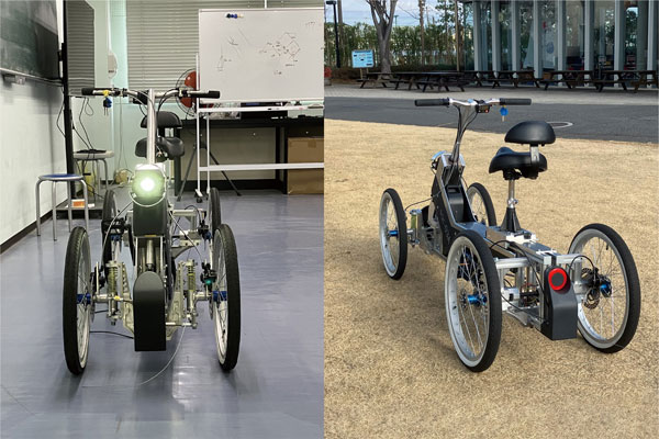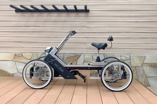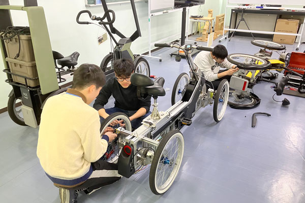 2026年2月、工学部 機械工学科と総合デザイン学科の4研究室合同で開発を進めている、環境に優しい電動アシスト四輪自転車の第5世代、「SQC-03A」が完成しました。