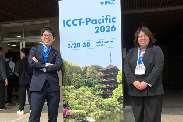 2026年3月28日~30日に、山口大学 吉田キャンパスで開催された国際会議「2026 IEEE 2nd International Conference on Consumer Technology – Pacific(ICCT-Pacific 2026)」において、大学院 工学研究科 博士前期課程 電気情報工学専攻 1年の鵜飼亜実さん、情報学部 情報学科 人工知能専攻1年の藤原駿裕さん、同学科 情報工学専攻3年の井上功規さんが研究成果を発表しました。