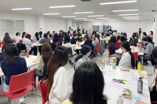2026年4月7日、学生ラウンジaqua(アクア)で、今年度入学した女子学生と女性教職員による「新入生女子歓迎会」が開催されました。湘南工科大学では、女子学生同士および女性教職員との親睦を深めることを目的に、毎年この懇親会を実施しています。
